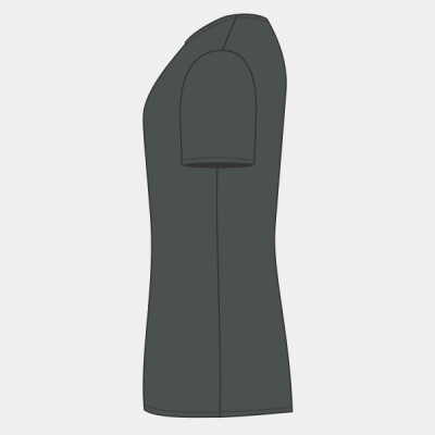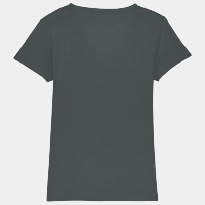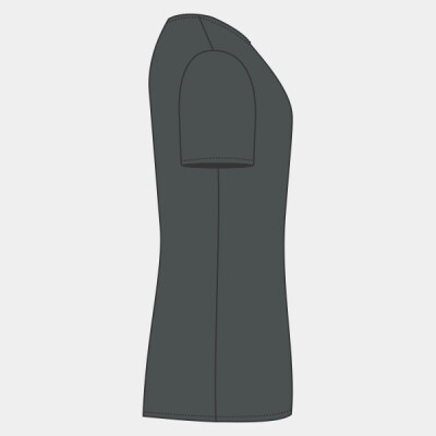 Set-in sleeve. Self-fabric at neck collar. Inside back neck tape in self-fabric. Sleeve hem and bottom hem with narrow double topstitch. Women's, medium fit, short sleeve, v-neck. 100% organic ringspun combed cotton. Single Jersey. Fabric washed. Vegan certified. Fairwear Foundation certified. Oeko-Tex certified.