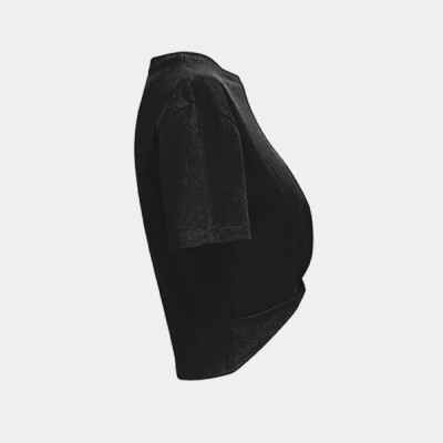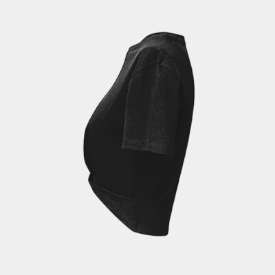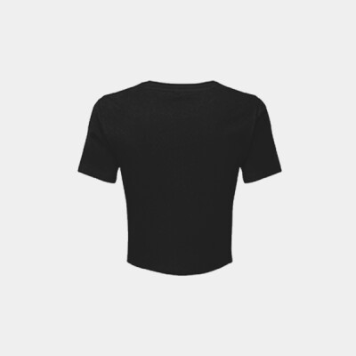Cropped t-shirt. Short sleeve. Twist detail to front. Crew neck. The product contains no branded neck or waist label. Removable kimble or looped garment tags. The inner seam label holds important product information on one label with a second label containing brand information which can be cut-away. Oeko-Tex fabric only, Amfori BSCI and Sedex certified.