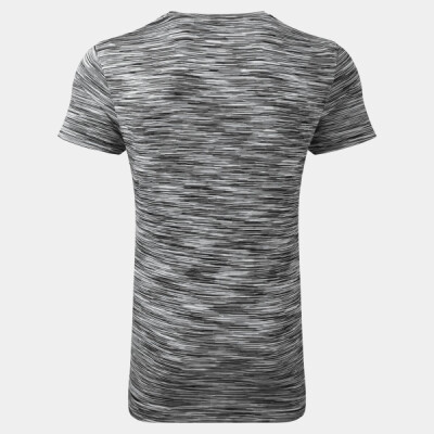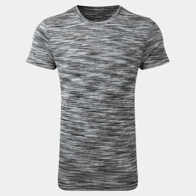 Wicking fabric. Stretch. Crew neck. Short sleeve. Lightweight. Twin-needle stitching on hem and arms. Slight stretch due to elastane blend. Space dyeing/yarn printing is a technique which gives yarn a unique, multicoloured effect. Oeko-Tex certified. Reach certified. Amfori BSCI certified. We recommend using block out vinyl and inks.Product contains no branded neck or waist label.* Removable Kimble or looped garment tags. Inner seam label holds important product information on one label with a second label containing brand information which can be cut-away.