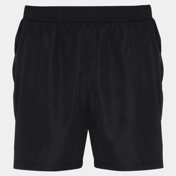 Wicking fabric. Elasticated waist. Woven fabric. Mid thigh length. Lightweight. Black heat seal tape detail on the front. Inside leg- 18cm. WRAP certified. BSCI certified. SEDEX certified. We recommend using block out vinyl and inks.Product contains no branded neck or waist label.* Removable Kimble or looped garment tags. Inner seam label holds important product information on one label with a second label containing brand information which can be cut-away.