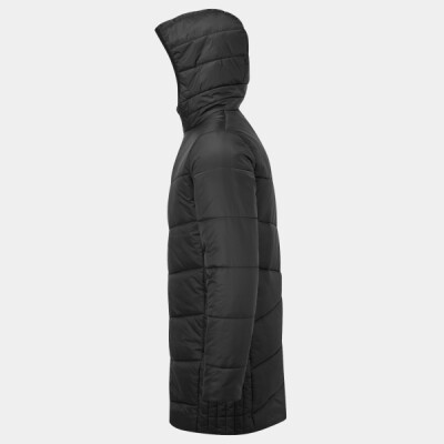 Lightweight mid-length padded jacket with diagonal quilting to centre front and back for a flattering fit. Vertical quilting side panels to body and horizontal quilting to arms. Full zip-through style with hood. Panel detailing to hood with elasticated finish for a snug fit. Internal storm flap. Zipped side pockets. Two concealed inner pockets, one left chest for storing items like a mobile phone or keys. Elasticated cuffs. Packable bag included for handy storage of jacket when not in use. WRAP certified. SEDEX certified. BSCI certified. We recommend using block out vinyl and inks.Product contains no branded neck or waist label.* Removable Kimble or looped garment tags. Inner seam label holds important product information on one label with a second label containing brand information which can be cut-away.